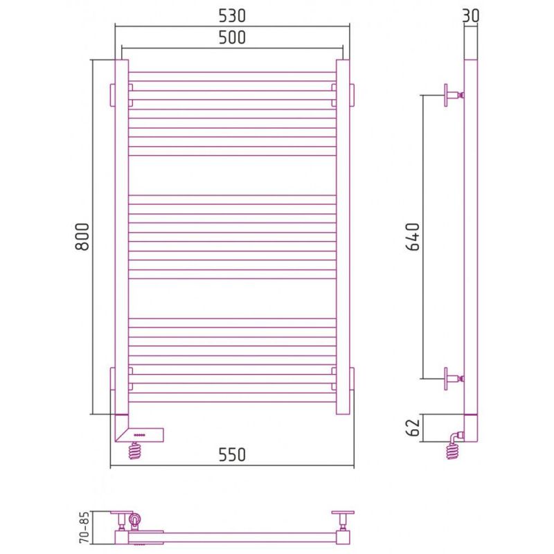 Полотенцесушитель электрический Сунержа Модус 2.0 800 x 500, ширина 50 см, высота 80 см, МЭМ левый/правый, хром