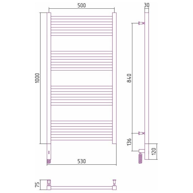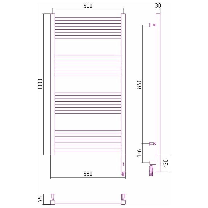 Полотенцесушитель электрический Сунержа Модус 3.0, 100 х 50 см, ширина 50 см, высота 100 см, с блоком управления МЭМ слева/справа, белый матовый