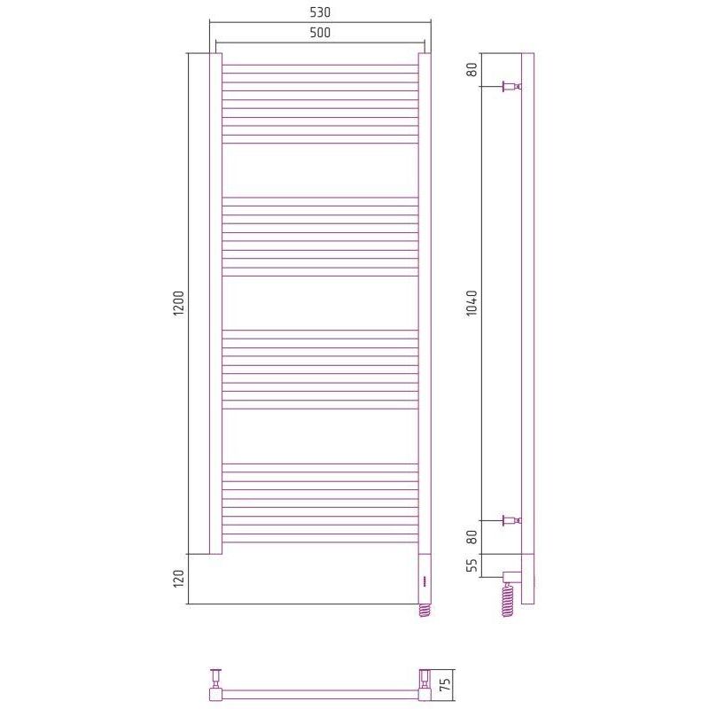 Полотенцесушитель электрический Сунержа Модус 3.0 1200 x 500, ширина 50 см, высота 120 см, МЭМ, левый/правый, белый матовый