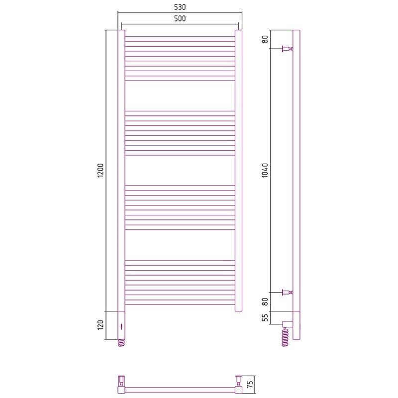 Полотенцесушитель электрический Сунержа Модус 3.0 1200 x 500, ширина 50 см, высота 120 см, МЭМ, левый/правый, черный матовый