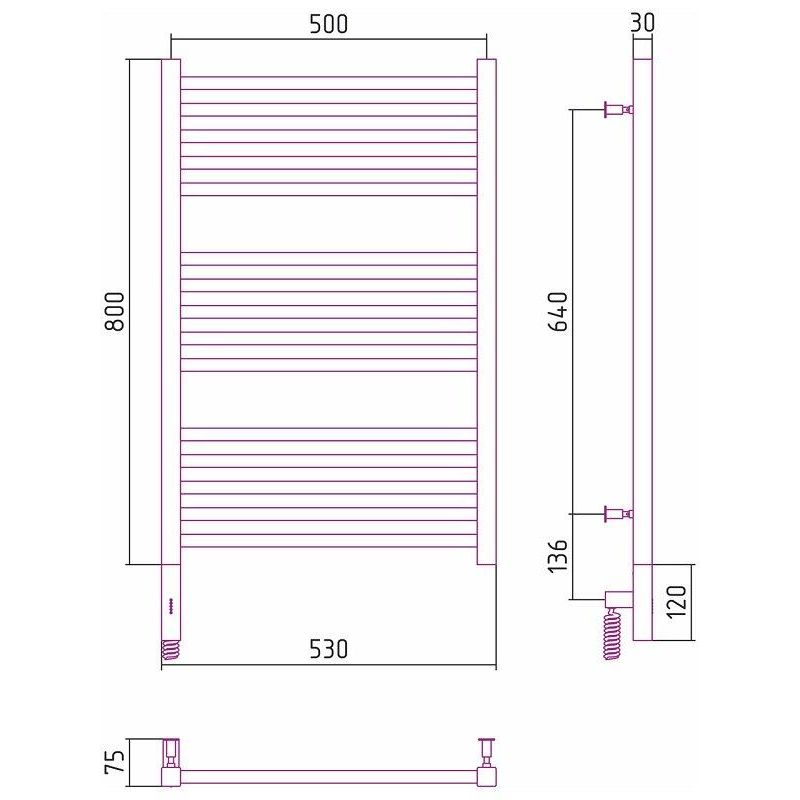 Полотенцесушитель электрический Сунержа Модус 3.0, 80 х 50 см, ширина 50 см, высота 80 см, с блоком управления МЭМ слева/справа, хром