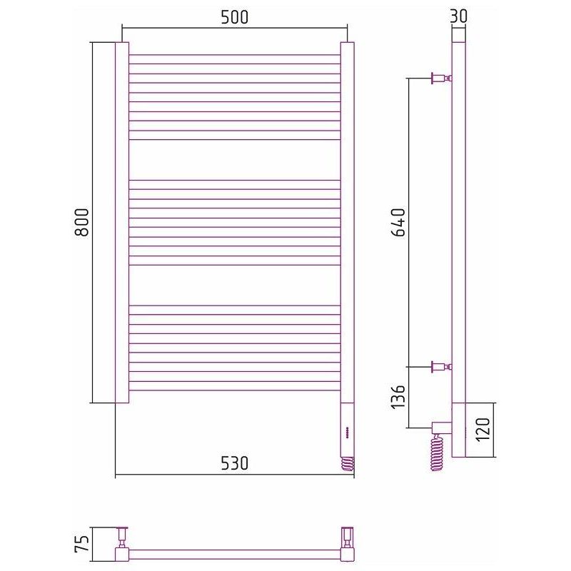 Полотенцесушитель электрический Сунержа Модус 3.0, 80 х 50 см, ширина 50 см, высота 80 см, с блоком управления МЭМ слева/справа, сатин