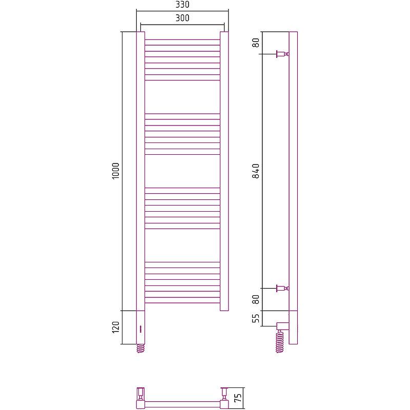 Полотенцесушитель электрический Сунержа Модус 3.0, высота 100 см, ширина 30 см, диммер слева/справа, цвет хром, 00-5700-1030/00-5701-1030