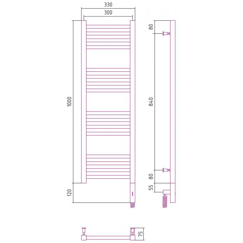 Полотенцесушитель электрический Сунержа Модус 3.0, высота 100 см, ширина 30 см, диммер слева/справа, цвет матовая шампань, 022-5700-1030/022-5701-1030