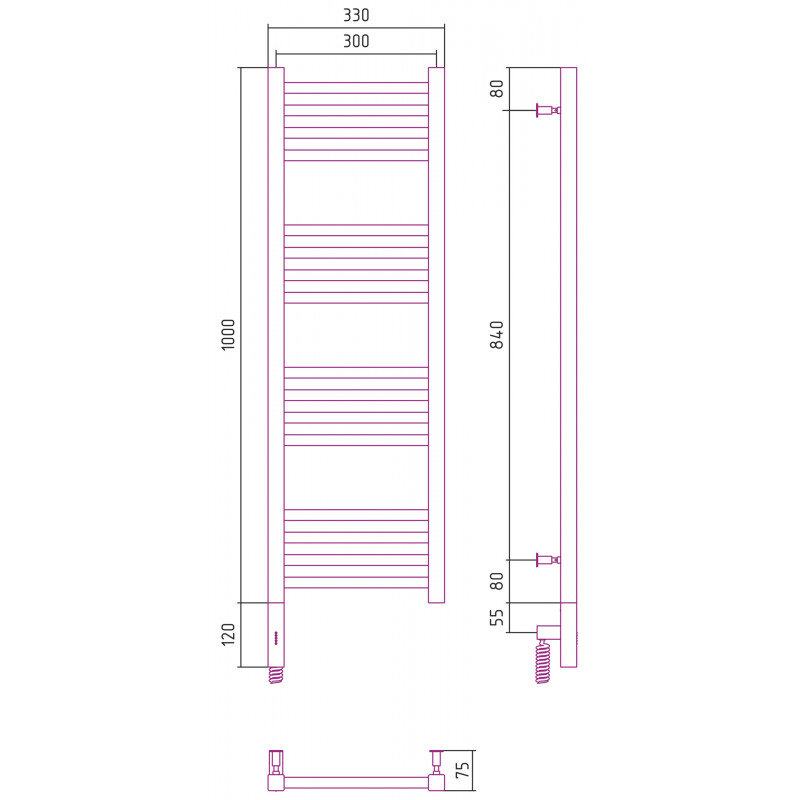 Полотенцесушитель электрический Сунержа Модус 3.0, высота 100 см, ширина 30 см, диммер слева/справа, цвет матовое золото, 032-5700-1030/032-5701-1030