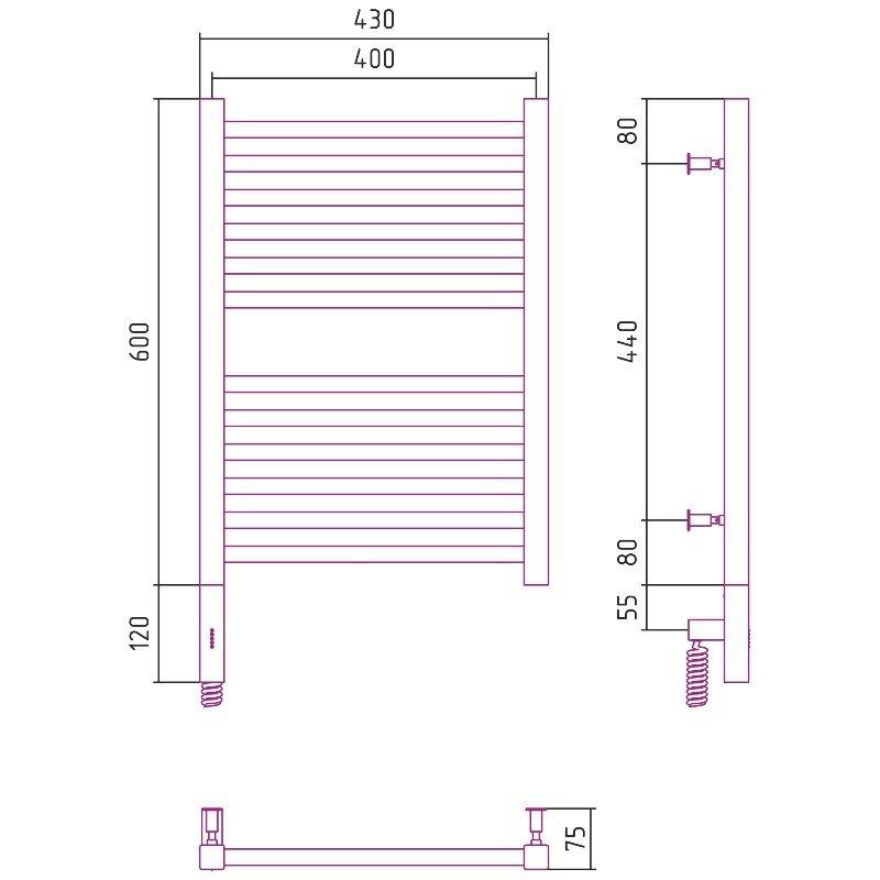 Полотенцесушитель электрический Сунержа Модус 3.0, высота 60 см, ширина 40 см, диммер слева/справа, цвет хром, 00-5700-6040/00-5701-6040
