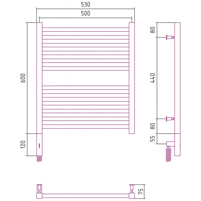 Полотенцесушитель электрический Сунержа Модус 3.0, высота 60 см, ширина 50 см, диммер слева/справа, цвет матовое золото, 032-5700-6050/032-5701-6050