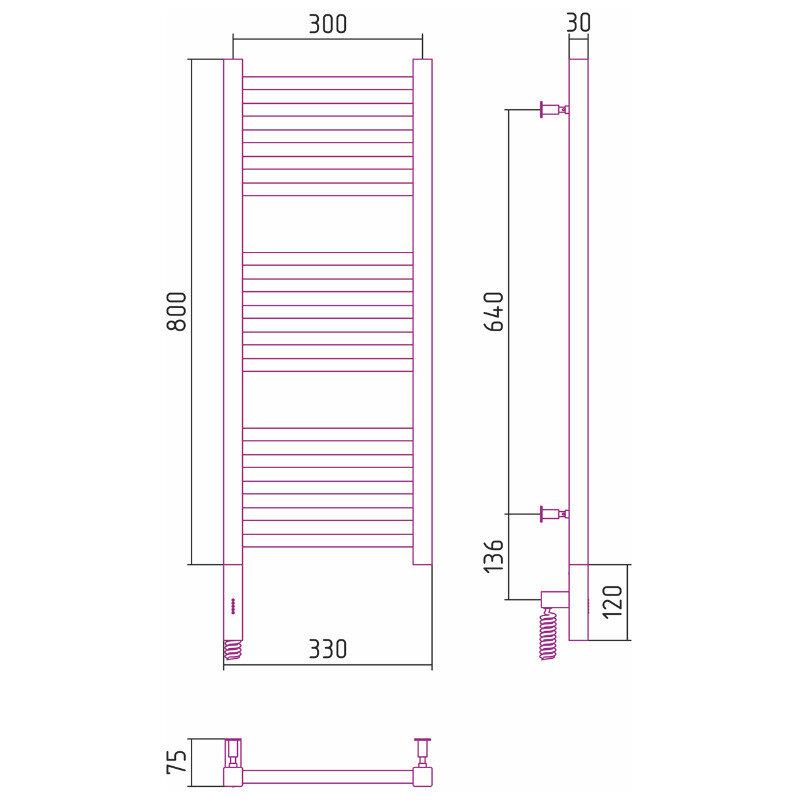 Полотенцесушитель электрический Сунержа Модус 3.0, высота 80 см, ширина 30 см, диммер слева/справа, цвет шампань, 020-5700-8030/020-5701-8030