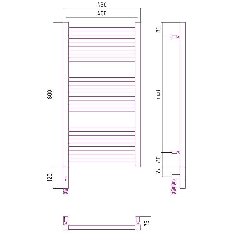 Полотенцесушитель электрический Сунержа Модус 3.0, высота 80 см, ширина 40 см, диммер слева/справа, цвет хром, 00-5700-8040/00-5701-8040