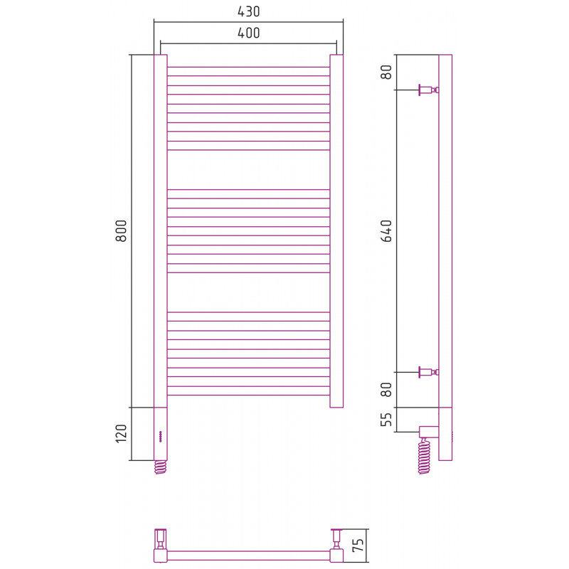 Полотенцесушитель электрический Сунержа Модус 3.0, высота 80 см, ширина 40 см, диммер слева/справа, цвет матовое золото, 032-5700-8040/032-5701-8040
