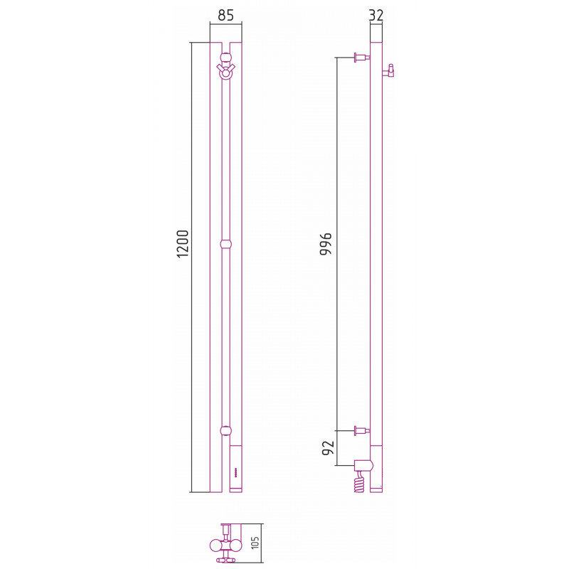 Полотенцесушитель электрический Сунержа Нюанс 3.0, высота 120 см, ширина 10 см, диммер справа, цвет состаренная латунь, 051-5843-1253