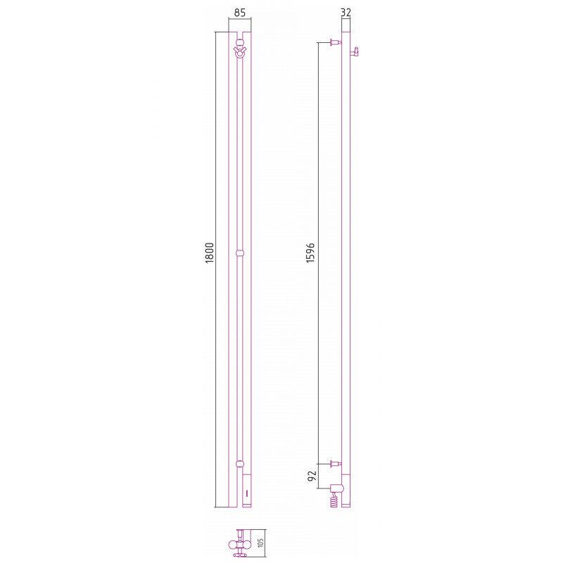 Полотенцесушитель электрический Сунержа Нюанс 3.0, высота 180 см, ширина 10 см, диммер справа, цвет состаренная латунь, 051-5843-1853