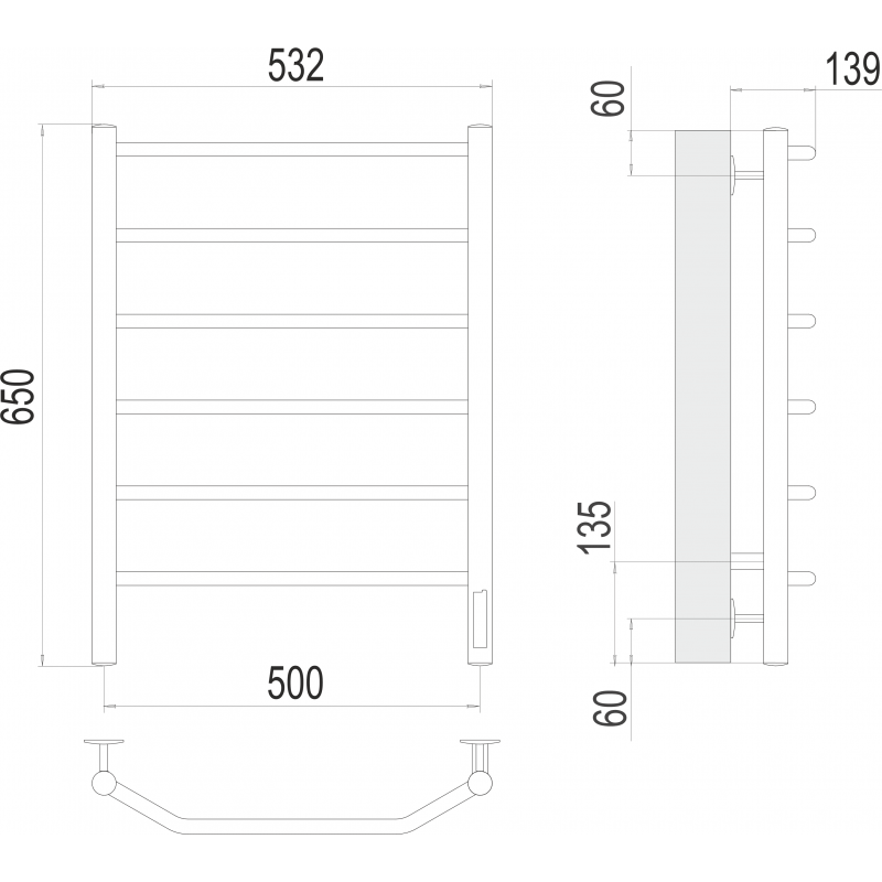 Полотенцесушитель Terminus Виктория П6 500х650 электро