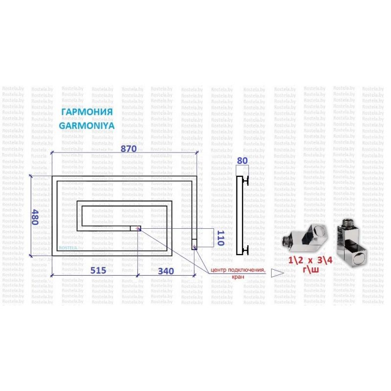 Полотенцесушитель водяной Ростела Гармония (подв., 1/2") 480 х 870