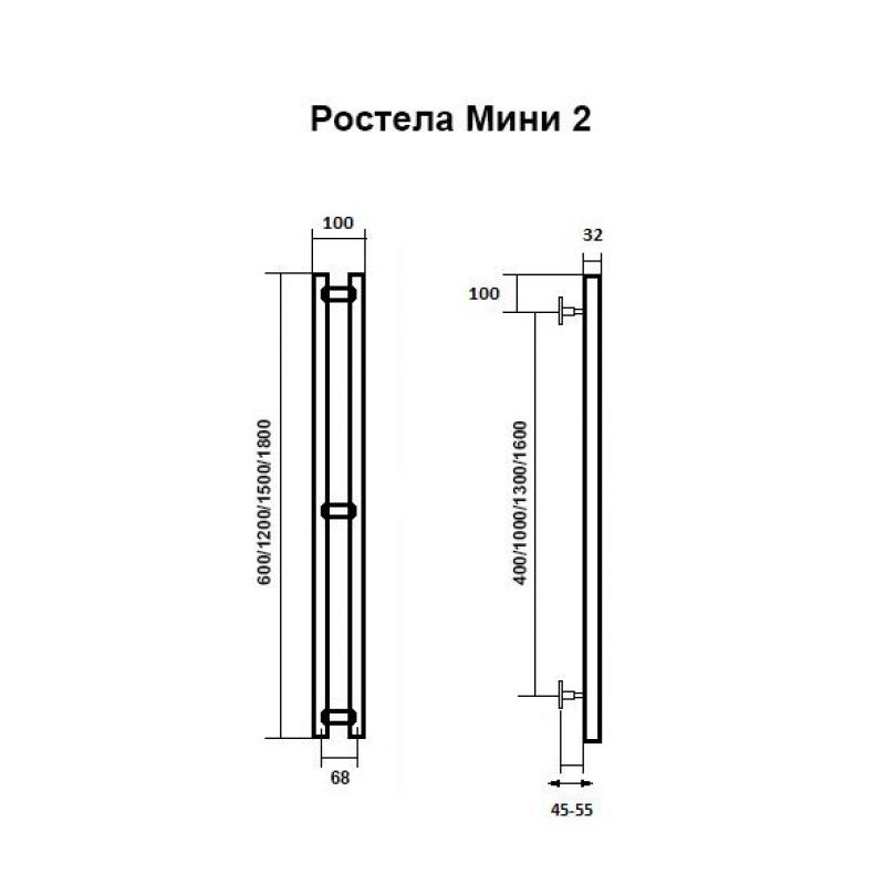 Полотенцесушитель водяной Ростела Мини нижн.подв.1/2" 100 х 1200 / 2