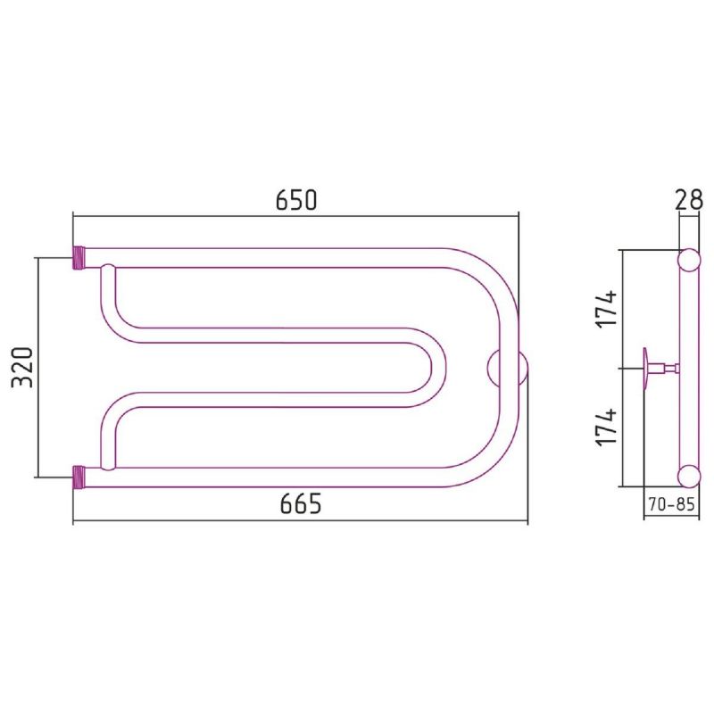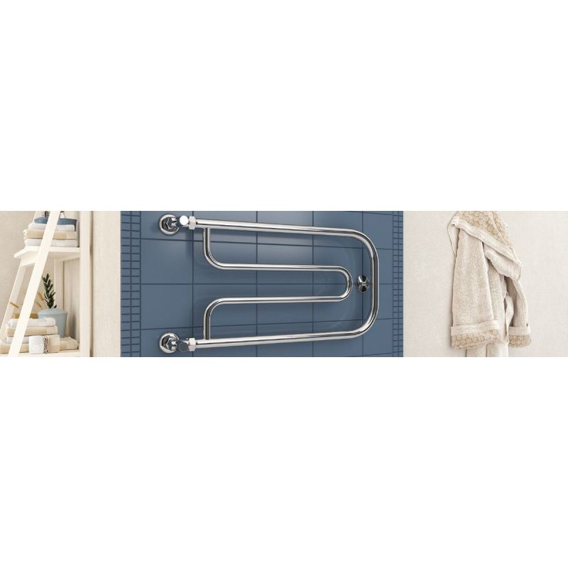 Полотенцесушитель водяной Стилье Дуэт 00010-3265, резьба-cгон 1 дюйм, высота 32 см x ширина 65 см, хром