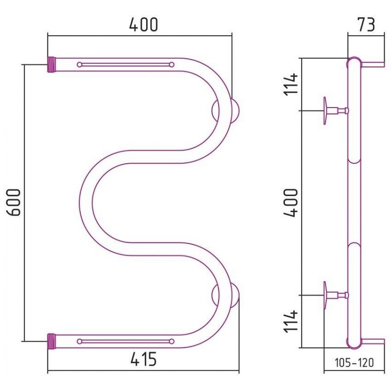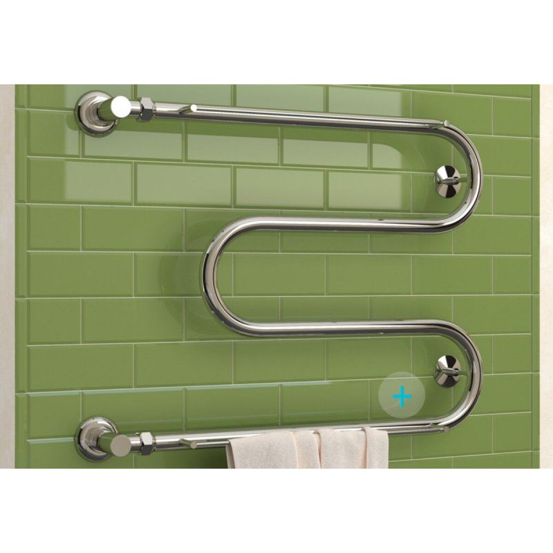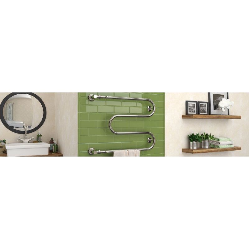 Полотенцесушитель водяной Стилье М-образный 00014-6040, с полочками, 1 дюйм, высота 60 см x ширина 40 см, хром