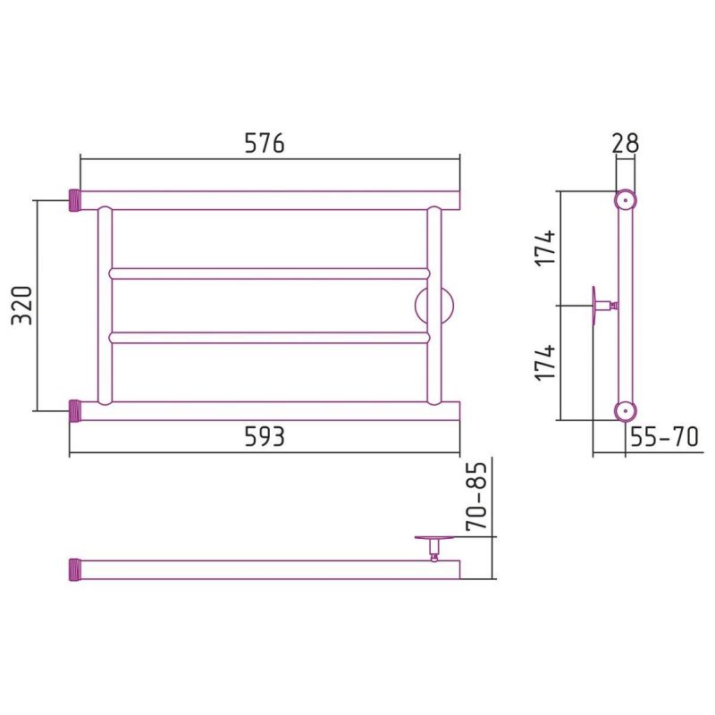 Полотенцесушитель водяной Стилье Минор 0600, 00600-3260, 1 дюйм, высота 32 см x ширина 60 см, хром