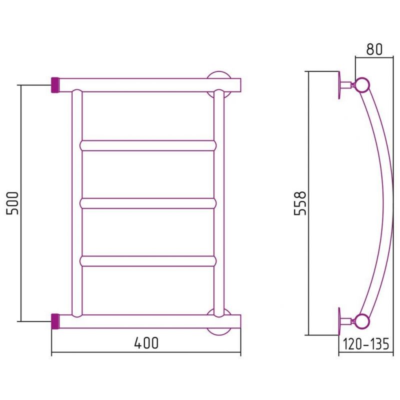 Полотенцесушитель водяной Стилье Минор 0602, 00602-5040, 1 дюйм, высота 50 см x ширина 40 см, хром