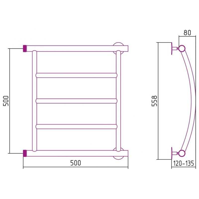 Полотенцесушитель водяной Стилье Минор 0602, 00602-5050, 1 дюйм, высота 50 см x ширина 50 см, хром