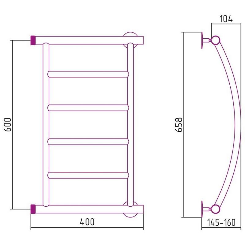Полотенцесушитель водяной Стилье Минор 0602, 00602-6040, 1 дюйм, высота 60 см x ширина 40 см, хром