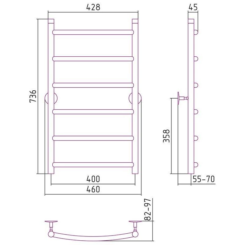 Полотенцесушитель водяной Стилье Универсал-50 00650-8040, высота 80 см x ширина 40 см, хром