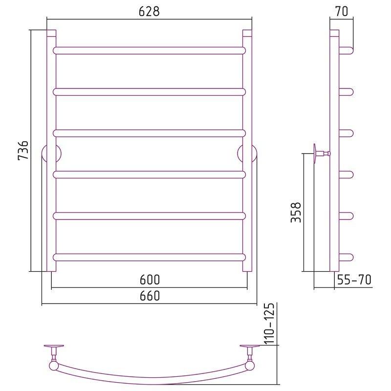 Полотенцесушитель водяной Стилье Универсал-50 00650-8060, высота 80 см x ширина 60 см, хром