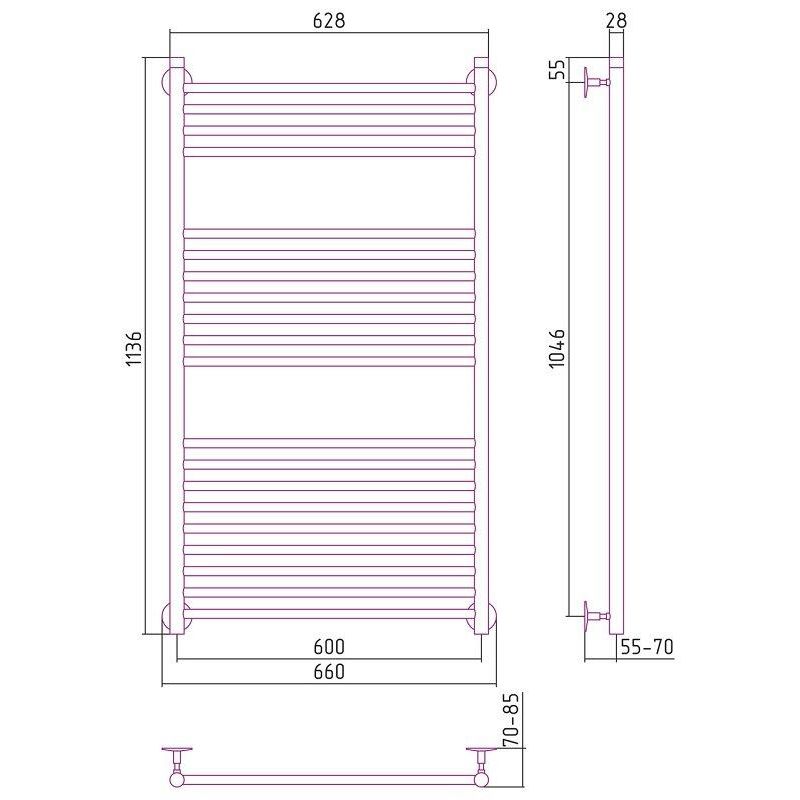 Полотенцесушитель водяной Стилье Универсал-53 00653-1260, высота 120 см x ширина 60 см, хром