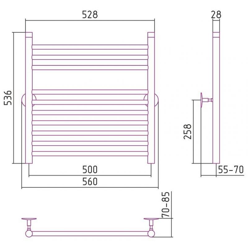 Полотенцесушитель водяной Стилье Универсал-53 00653-6050, высота 60 см x ширина 50 см, хром