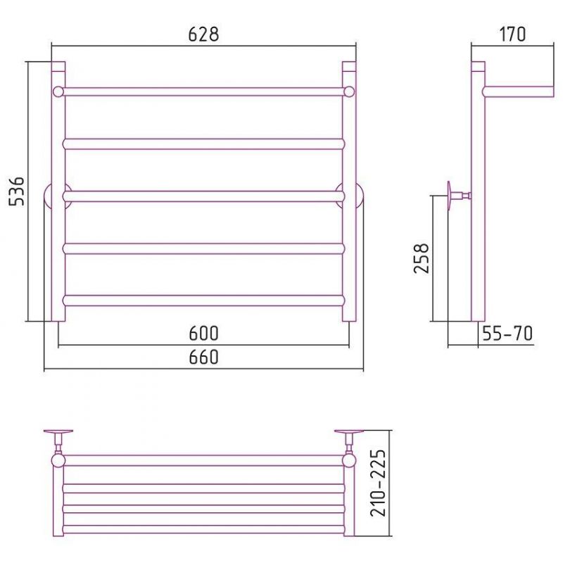 Полотенцесушитель водяной Стилье Универсал-54 00654-6060, с полкой, высота 60 см x ширина 60 см, хром