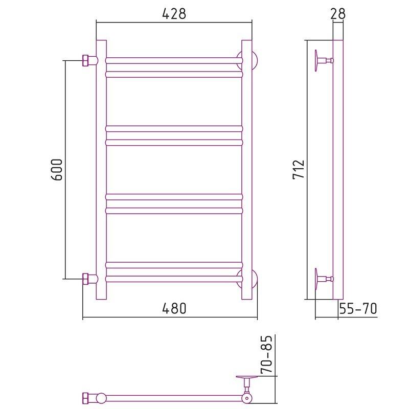 Полотенцесушитель водяной Стилье Версия-Б1, 40/60, ширина 40 см, высота 60 см, боковое подключение 60 см, цвет белый, 12611-6040