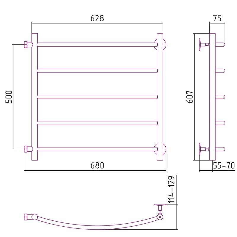 Полотенцесушитель водяной Стилье Версия-Б2, 60/50, ширина 60 см, высота 50 см, боковое подключение 50 см, цвет белый, 12612-5060