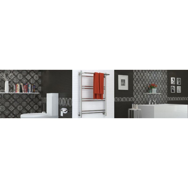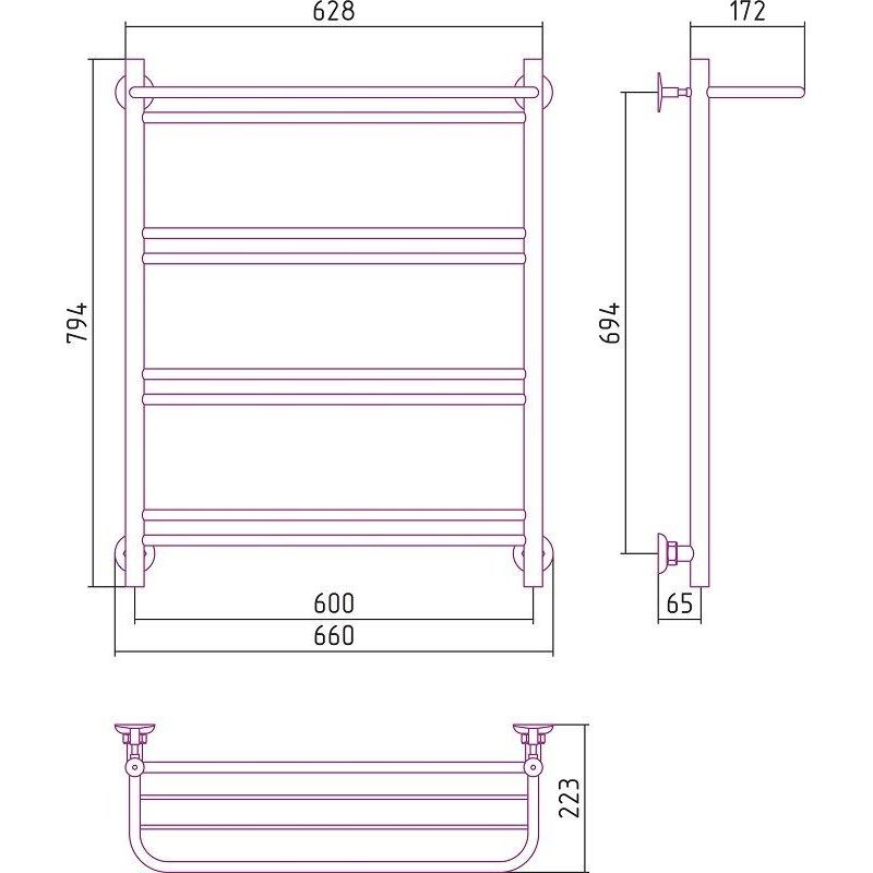 Полотенцесушитель водяной Стилье Версия-H1 00621-8060, с полкой, 3/4 дюйма накидные гайки, высота 80 см x ширина 60 см, хром