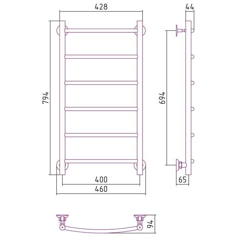 Полотенцесушитель водяной Стилье Версия-H2 00622-8040, 3/4 дюйма накидные гайки, высота 80 см x ширина 40 см, хром
