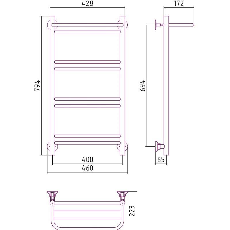 Полотенцесушитель водяной Стилье Версия-Н1, 40/80, ширина 40 см, высота 80 см, нижнее подключение, цвет белый, 12621-8040