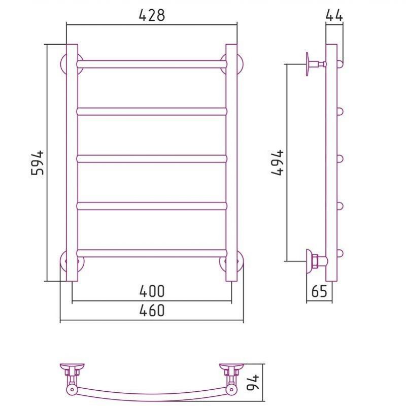 Полотенцесушитель водяной Стилье Версия-Н2, 40/60, ширина 40 см, высота 60 см, нижнее подключение, цвет белый, 12622-6040