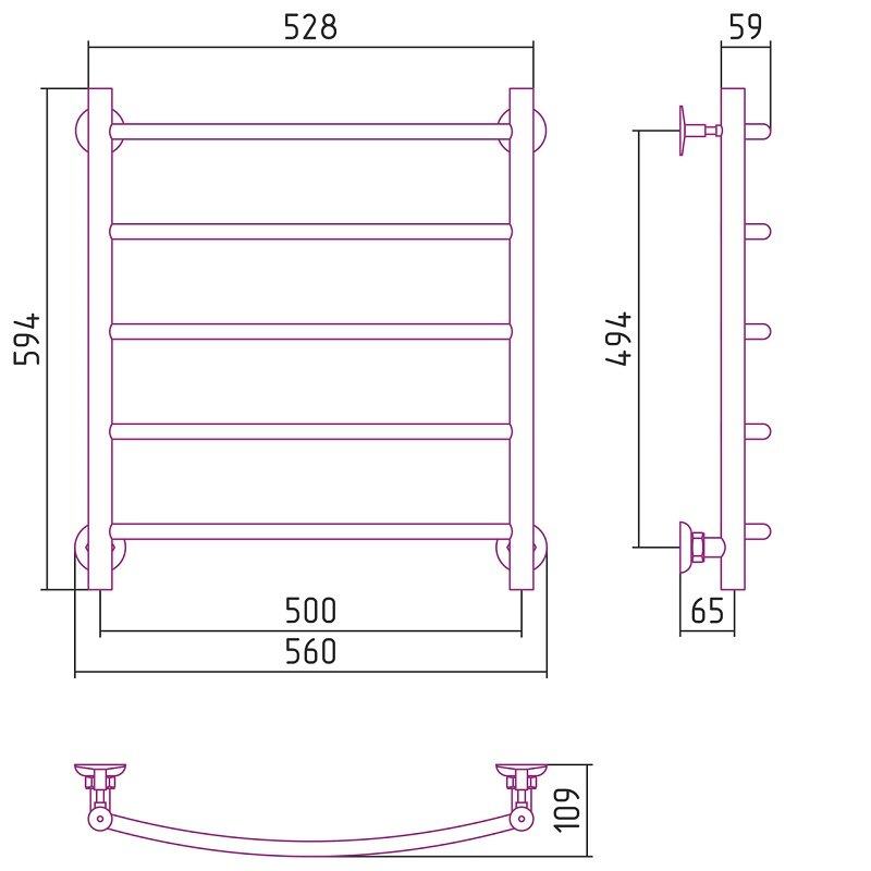 Полотенцесушитель водяной Стилье Версия-Н2, 50/60, ширина 50 см, высота 60 см, нижнее подключение, цвет белый, 12622-6050