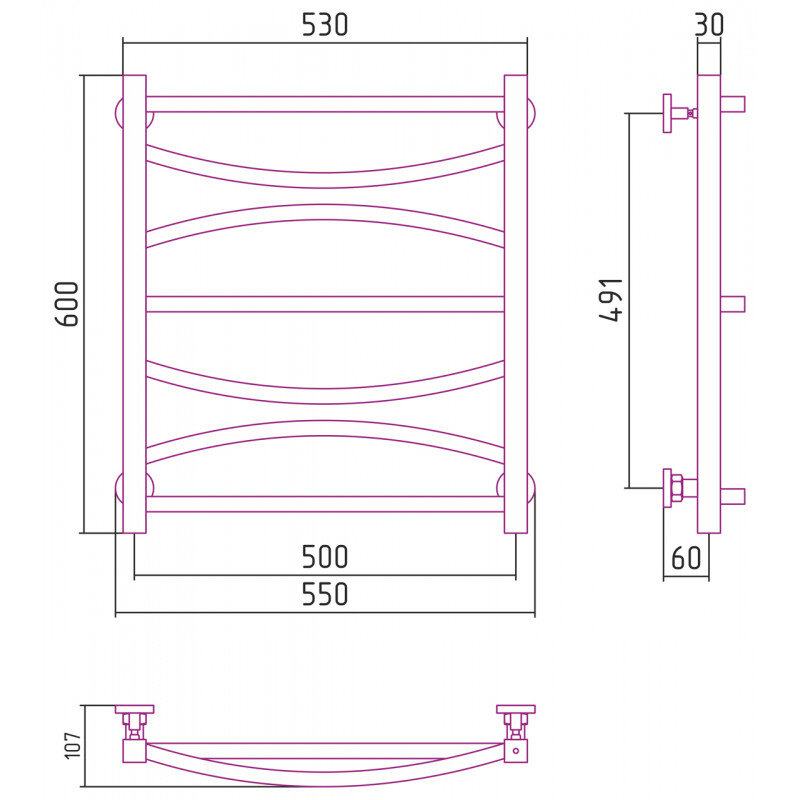 Полотенцесушитель водяной Сунержа Ажур 30-0255-6050, высота 60 см, ширина 50 см, нижнее подключение, цвет матовый белый