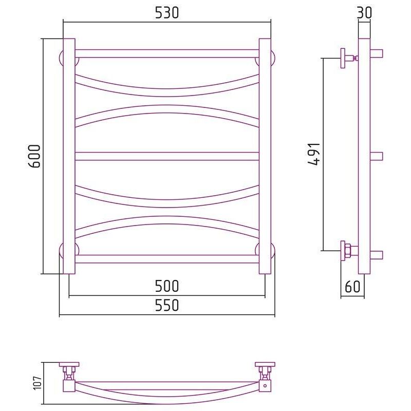 Полотенцесушитель водяной Сунержа Ажур, ширина 50 см высота 60 см, нижнее подключение, хром, 00-0255-6050