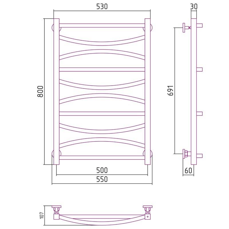 Полотенцесушитель водяной Сунержа Ажур, высота 80 см, ширина 50 см, цвет шампань, 020-0255-8050