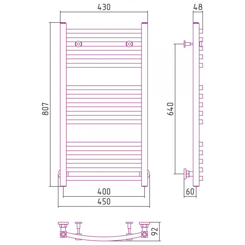 Полотенцесушитель водяной Сунержа Аркус 15-0251-8040, высота 80 см, ширина 40 см, универсальное подключение, цвет тёмный титан муар