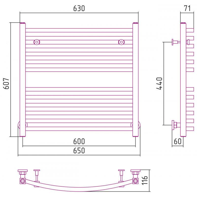 Полотенцесушитель водяной Сунержа Аркус 31-0251-6060, высота 60 см, ширина 60 см, универсальное подключение, цвет матовый черный