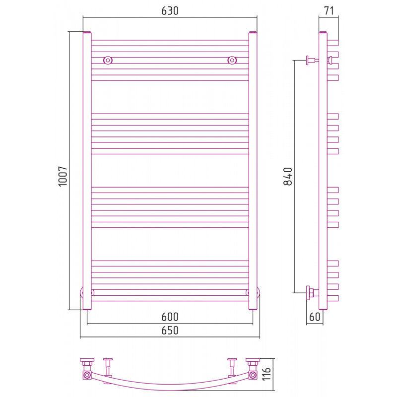 Полотенцесушитель водяной Сунержа Аркус, высота 100 см, ширина 60 см, универсальное подключение, цвет золото, 03-0251-1060
