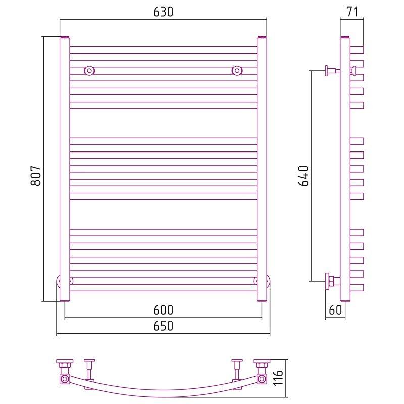 Полотенцесушитель водяной Сунержа Аркус, высота 80 см, ширина 60 см, цвет шампань, 020-0251-8060