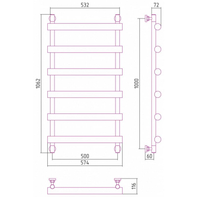 Полотенцесушитель водяной Сунержа Атлант 31-0226-1050, высота 100 см, ширина 50 см, универсальное подключение, цвет матовый черный