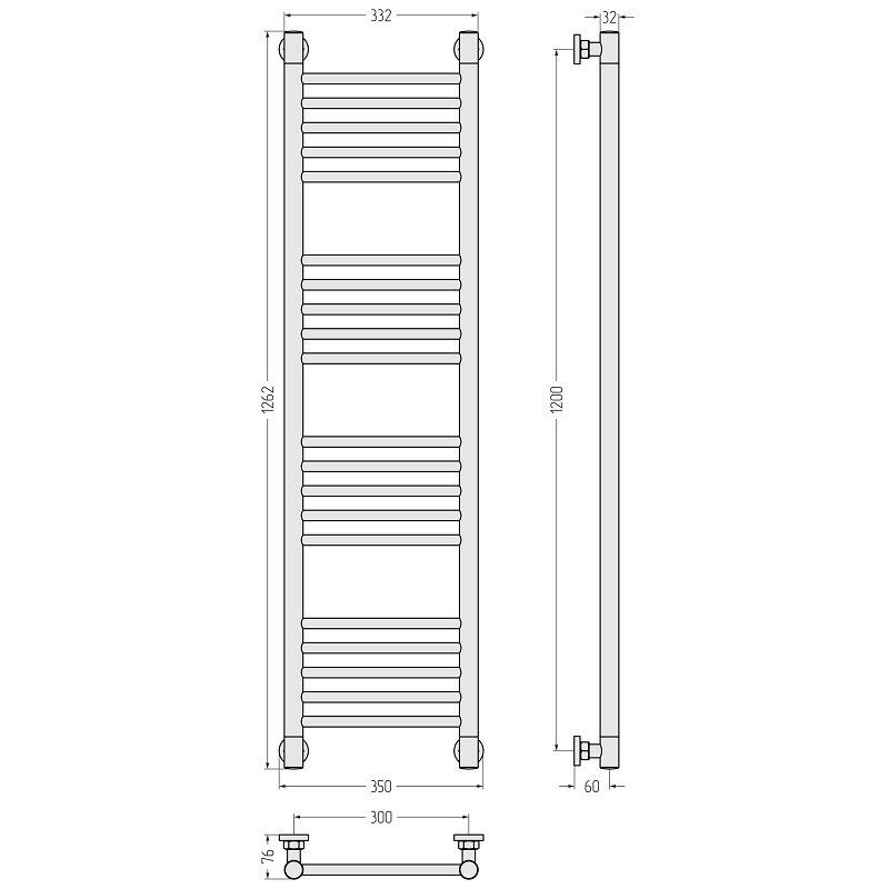 Полотенцесушитель водяной Сунержа Богема+ 12-0220-1230, высота 120 см, ширина 30 см, универсальное подключение, цвет белый