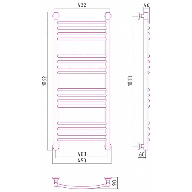 Полотенцесушитель водяной Сунержа Богема+ 12-0221-1040, высота 100 см, ширина 40 см, универсальное подключение, цвет белый