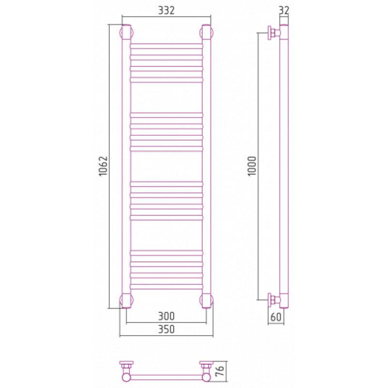 Полотенцесушитель водяной Сунержа Богема+ 15-0220-1030, высота 100 см, ширина 30 см, универсальное подключение, цвет тёмный титан муар