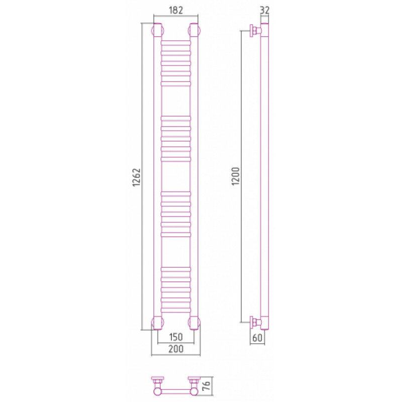 Полотенцесушитель водяной Сунержа Богема+ 15-0220-1215, высота 120 см, ширина 15 см, универсальное подключение, цвет тёмный титан муар