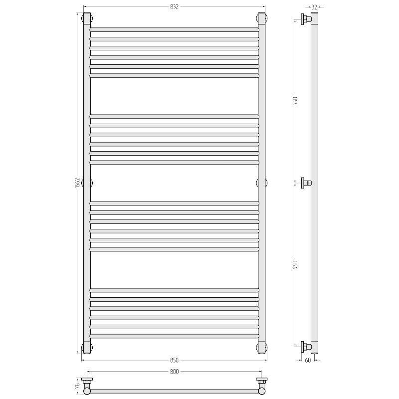Полотенцесушитель водяной Сунержа Богема+ 15-0220-1580, высота 150 см, ширина 80 см, универсальное подключение, цвет тёмный титан муар